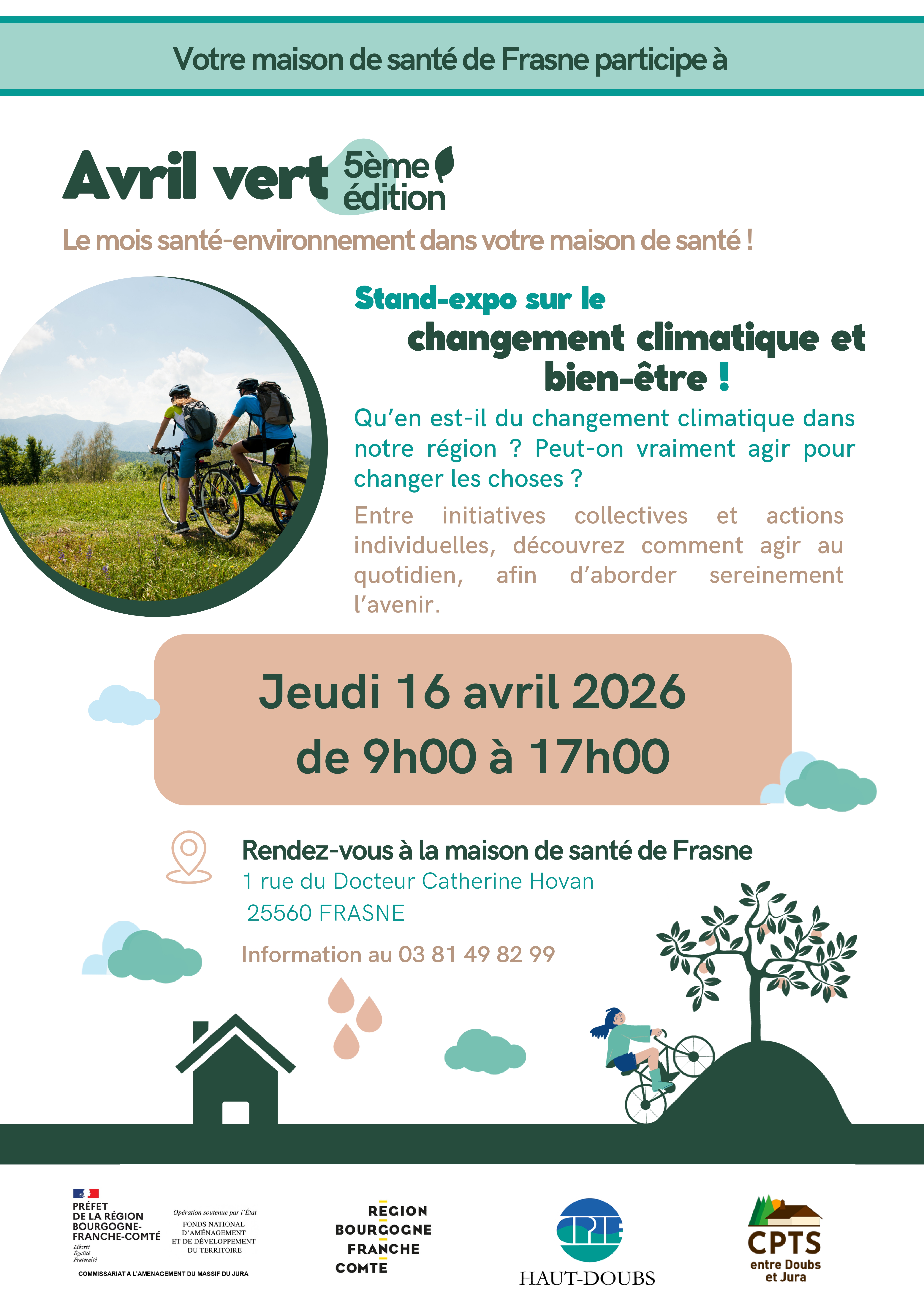 Jeudi 16 avril 2026 - Frasne (Maison de Santé) de 9h00 à 17h00