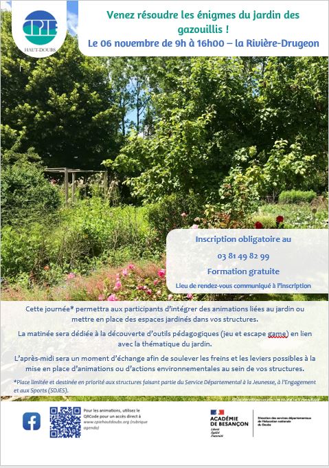 La matinée sera dédiée à la découverte d’outils pédagogiques (jeu et escape game) en lien avec la thématique du jardin.